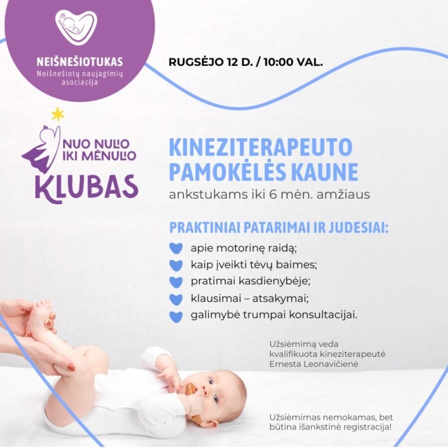 🔔 Svarbu: Užsiėmimas gali būti fotografuojamas, o nuotraukomis dalijamasi su Neišnešiotuko bendruomene.