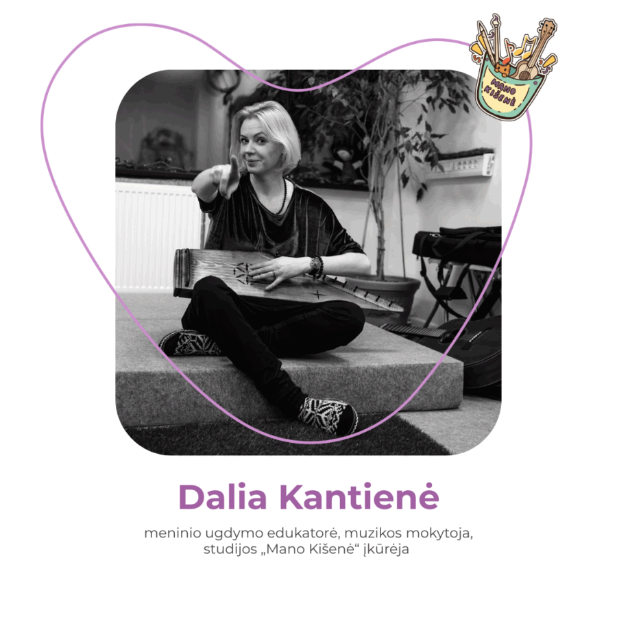 Dalia Kantienė – meninio ugdymo edukatorė ir muzikos mokytoja, studijos „Mano kišenė“ įkūrėja. Jos ugdymo filosofija remiasi tikėjimu, kad kiekvienas vaikas yra kūrėjas – tereikia jam suteikti laisvės, įrankių ir įkvėpimo. Dalia kuria jaukią, įtraukiančią aplinką, kurioje vaikai ne tik mokosi muzikos ar teatro pagrindų, bet ir auga kaip asmenybės, lavina savo vaizduotę, emocinį intelektą ir kūrybiškumą.