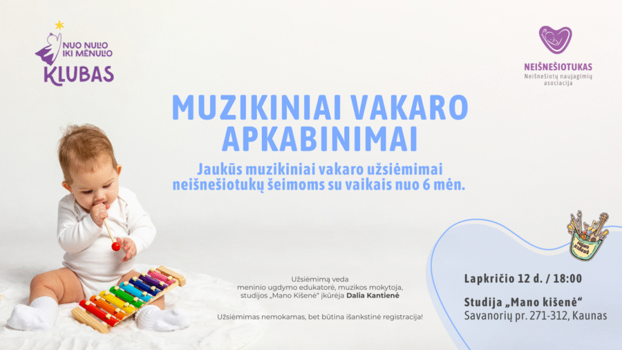 🔔 Svarbu: Užsiėmimas gali būti fotografuojamas, o nuotraukomis dalijamasi su Neišnešiotuko bendruomene.