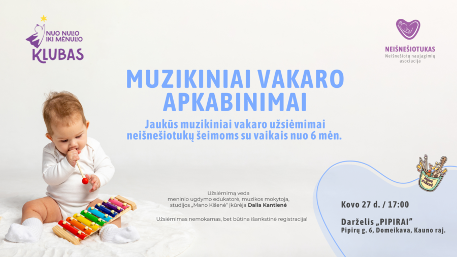 🔔 Svarbu: Užsiėmimas gali būti fotografuojamas, o nuotraukomis dalijamasi su Neišnešiotuko bendruomene.