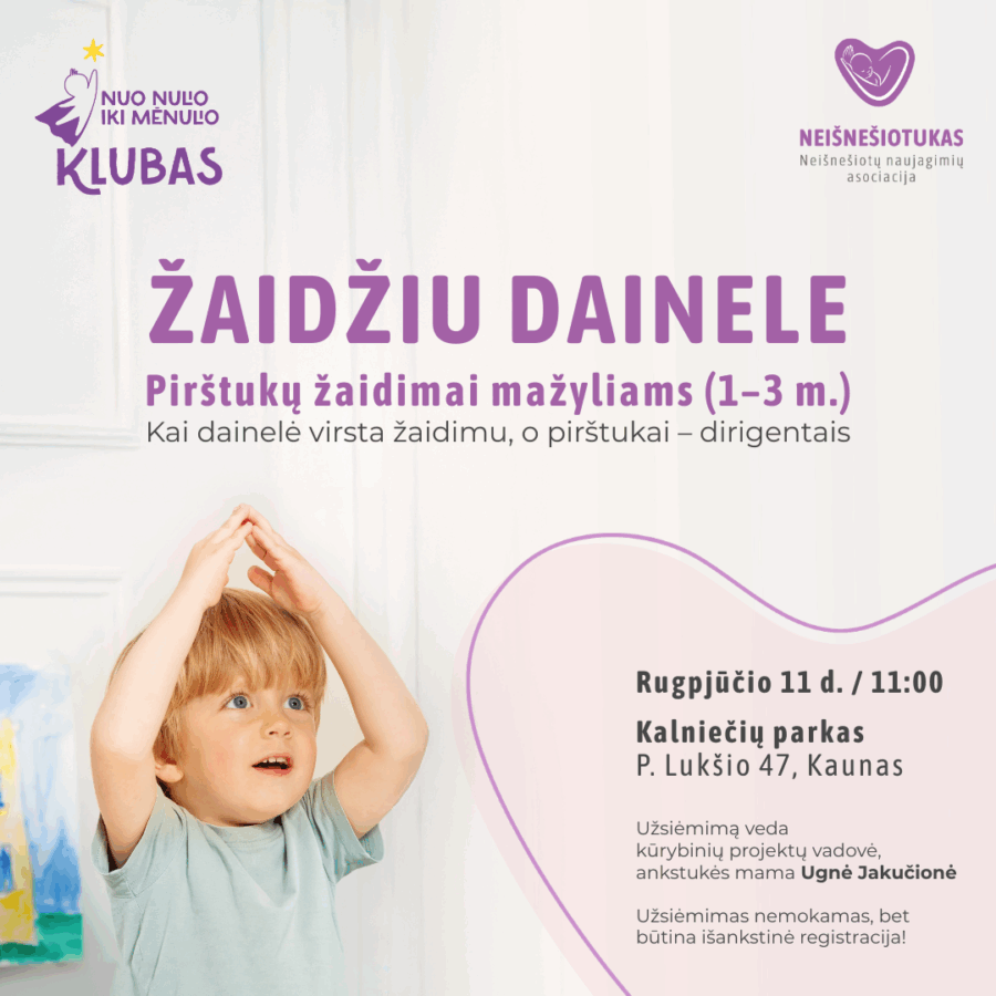 🔔 Svarbu: Užsiėmimas gali būti fotografuojamas, o nuotraukomis dalijamasi su Neišnešiotuko bendruomene.